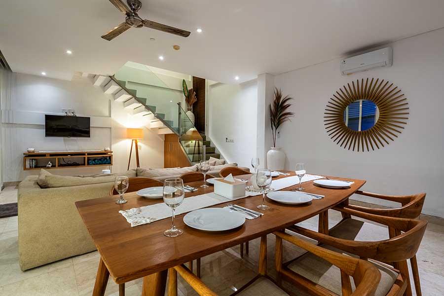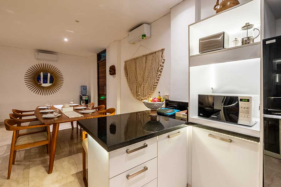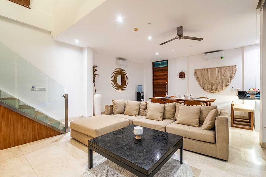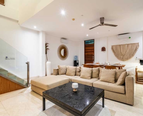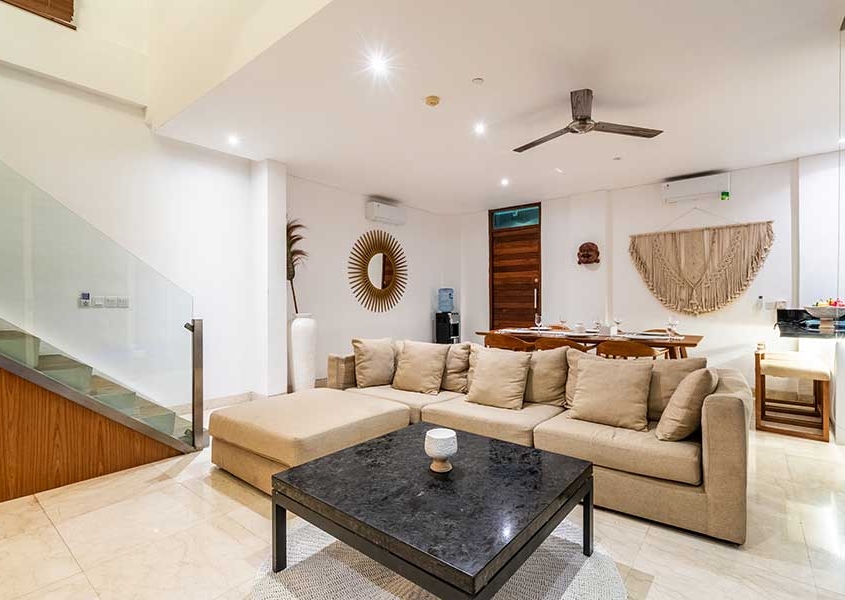 The Villa 3B (120 m²) boast well-furnished accommodation with 22 m2 private pool supported by minimalist design, cozy living area downstairs with modern fusion. Second floor Bedroom and private bathroom with hot and normal water.